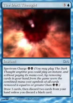 , Pay 1 life: You may reveal any number of blue instants or sorcerys from your hand, you may play an instant or sorcery from your hand with converted mana cost equal to the number of cards revealed this way without paying its mana cost. Sorcerys may be played as instants.