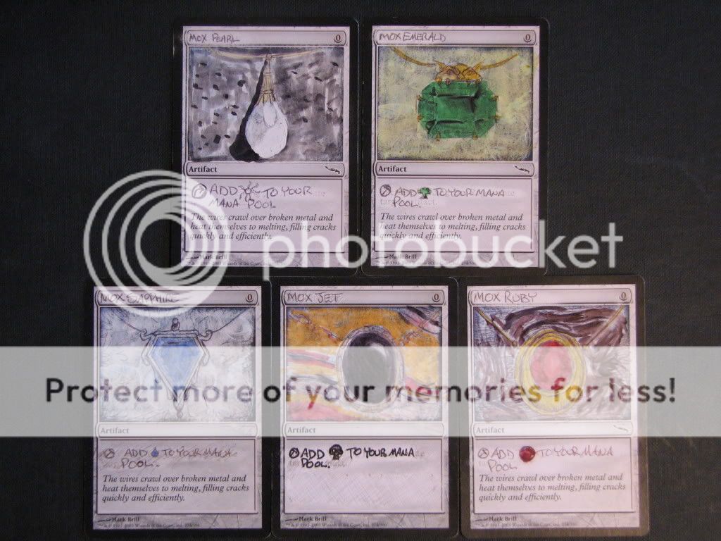 Examples: Welding Jar or Spellbook can be used for a Mox or Black Lotus Disarm could be used for an Ancestral Recall Train of Thought for a Time Walk Counsel of the Soratami for a Timetwister.