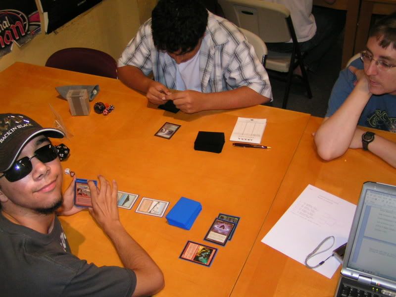 A little flashback, the Beta Ruby tourney at Sacramento, Luis was in the finals. He lost in 3 games, and it was a little frustrating. Props to Paul with mono B, but honestly, a lot of things were… rather interesting. Not to mention, I got paired with Luis on the final round, knowing only one of us can top 8, sort of like me 2-1’ing and got paired with Goblins; destined not to top 8 on the elimination round. (Luis would had a better chance than me in the top 8 of that tourney, and it did turn out that way) I just see too many similarities between the last two tourneys; the elimination rounds, final results, and… me doing à T_T