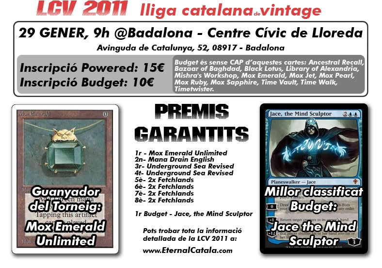 Entrance fee is 15 euros, 10 euros for people playing budget decks (in previous picture you can find which cards exclude a budget deck). Guaranted prizes (can increase depending on assistance) will be: