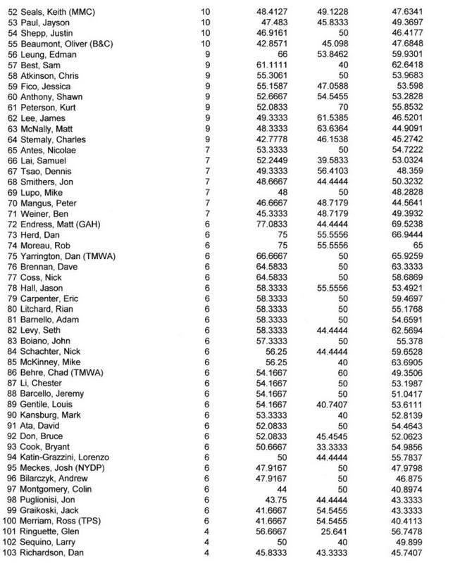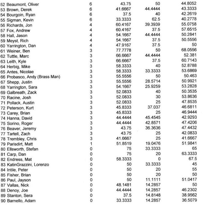Team RIT 18+15+15=48 (Tiebreaks- 54.3155, 60.1190, 57.8125)