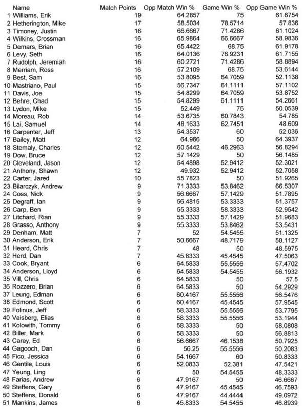 TND OPEN 10 Final Standings after 8 rounds of swiss: