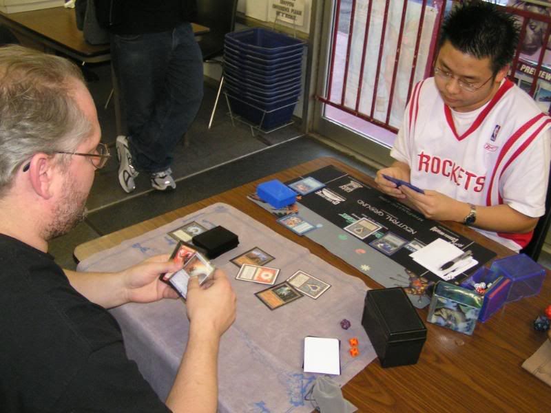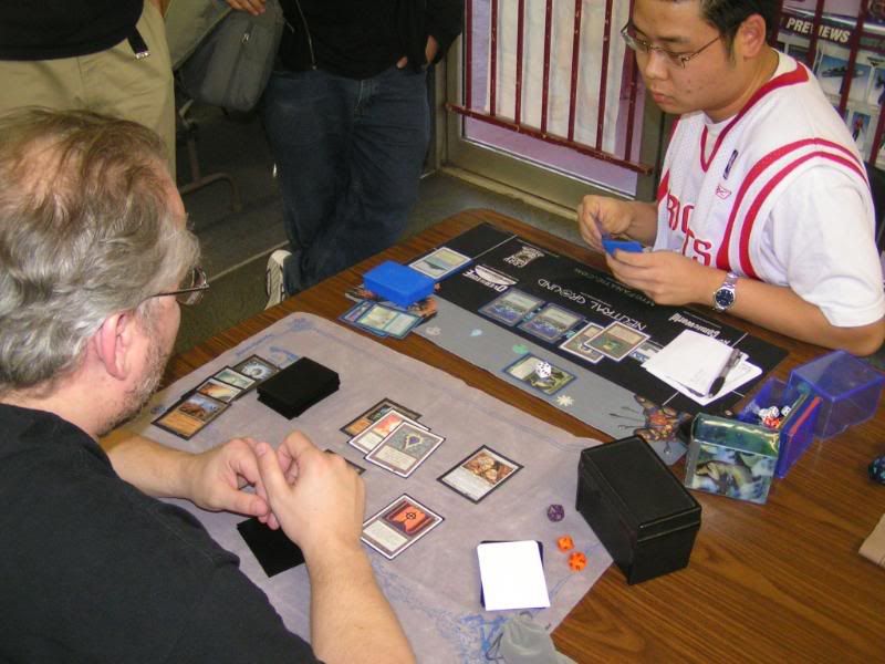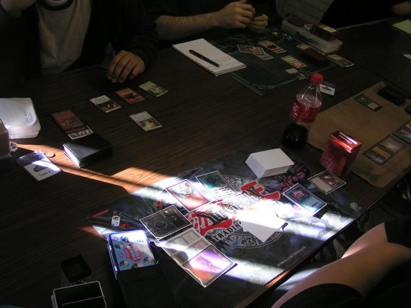 Jeff's Turn 2. Austin doesn't look happy. Jeff hand double force backup on turn 1 for anyplay he made. Austin watched Jeff go from 20 life to 3 life on a will turn.