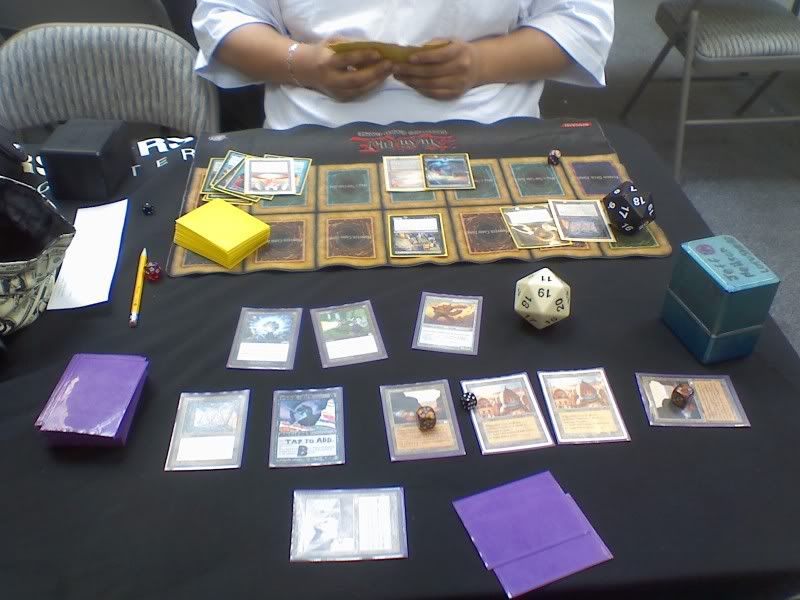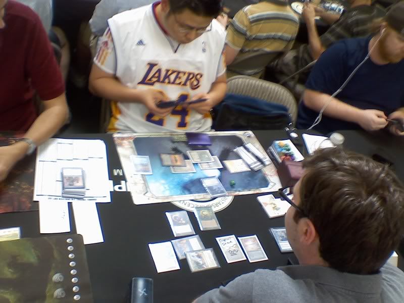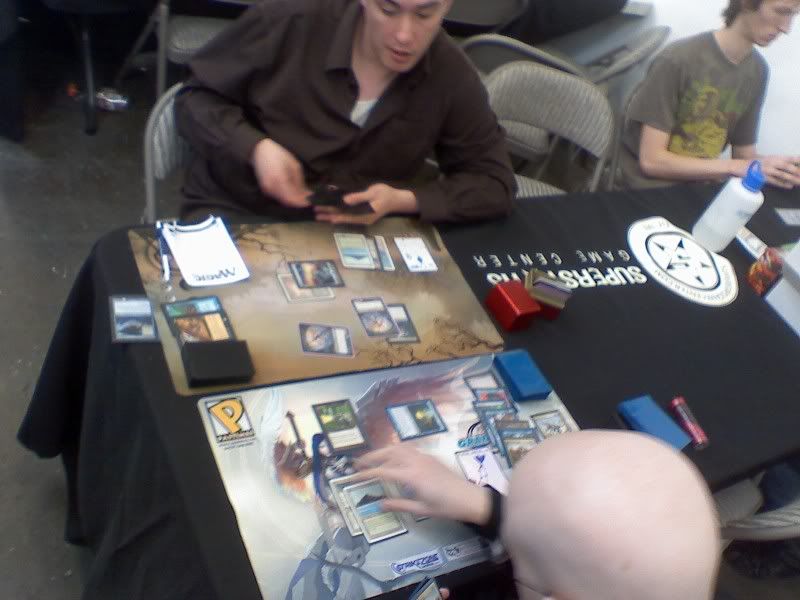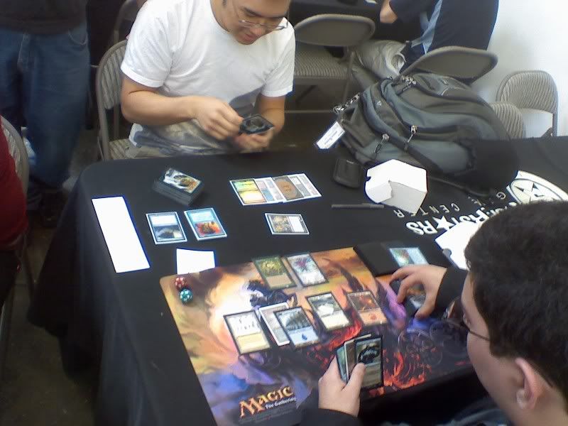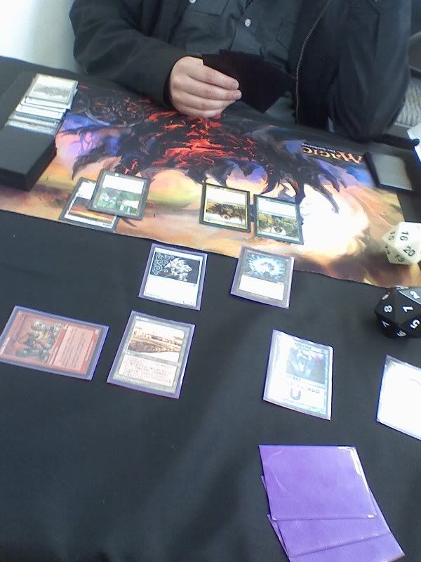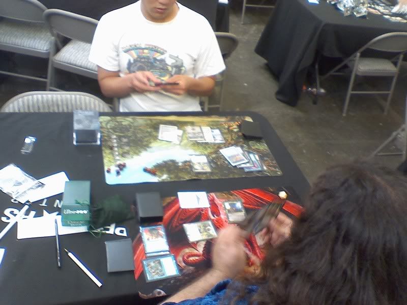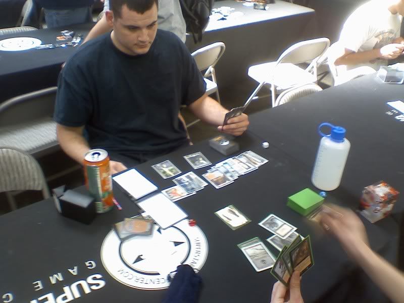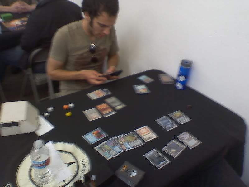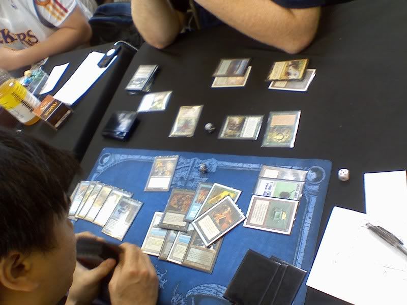 My intense game 1 vs Mark Arce's Noble Fish. I got myself down to 2, then 1 life and held him off for awhile, but he finally started drawing more dudes.