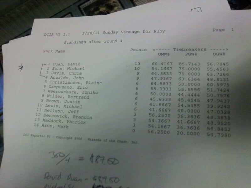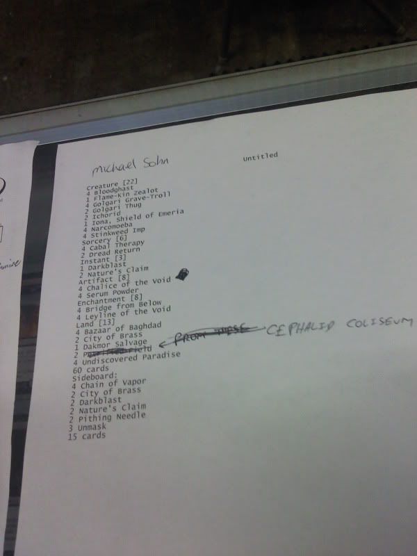 While all our pro players are in denver, the judge for the day was handed a Dredge deck to pilot. Otherwise, BC's deck looks like it was working.