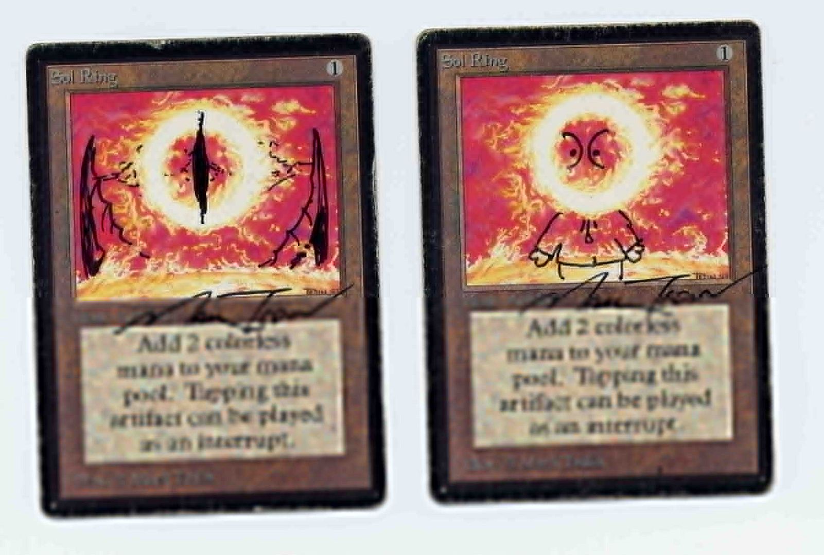 I like seeing Eye of Sauron Sol Rings because I have the first one that ever existed. At Origins two years ago, I asked Tedin to do one for me and he said he'd never thought of doing that before. It now resides on a beat, revised Ring. The Eye looks pretty crappy but it's a one-of-a-kind so whatever : )