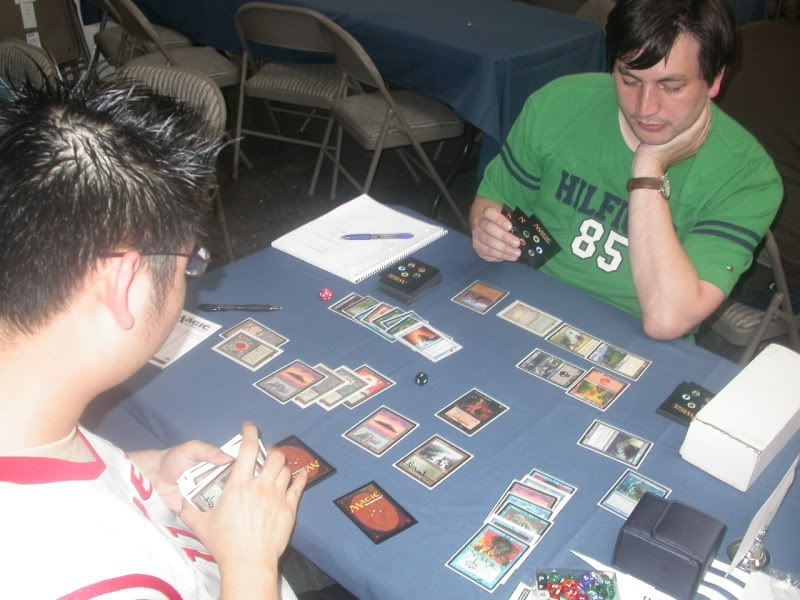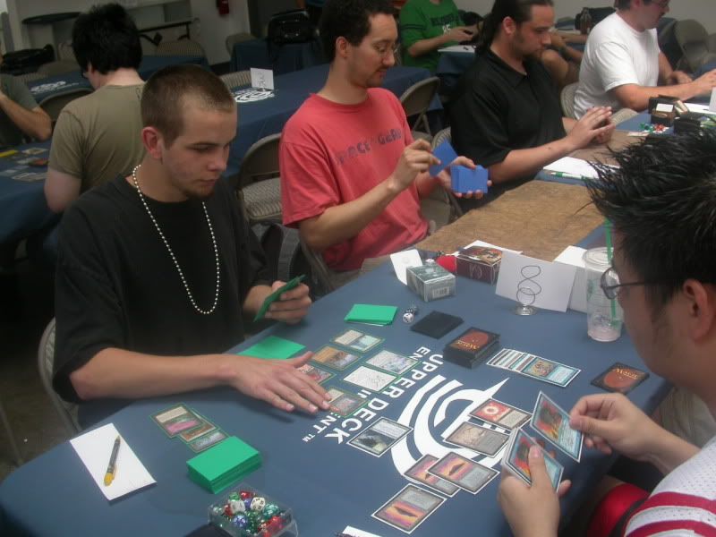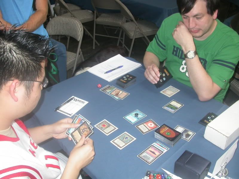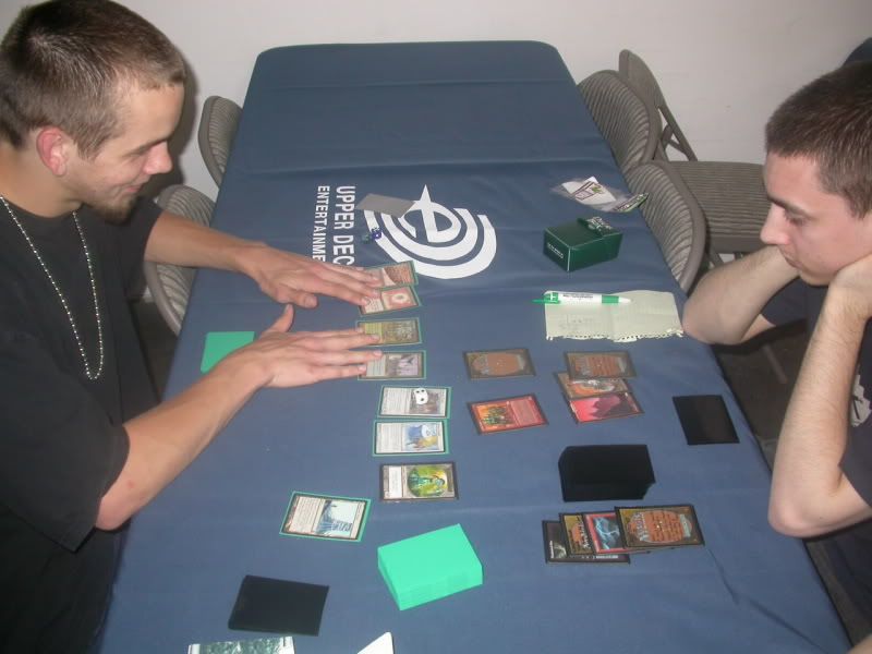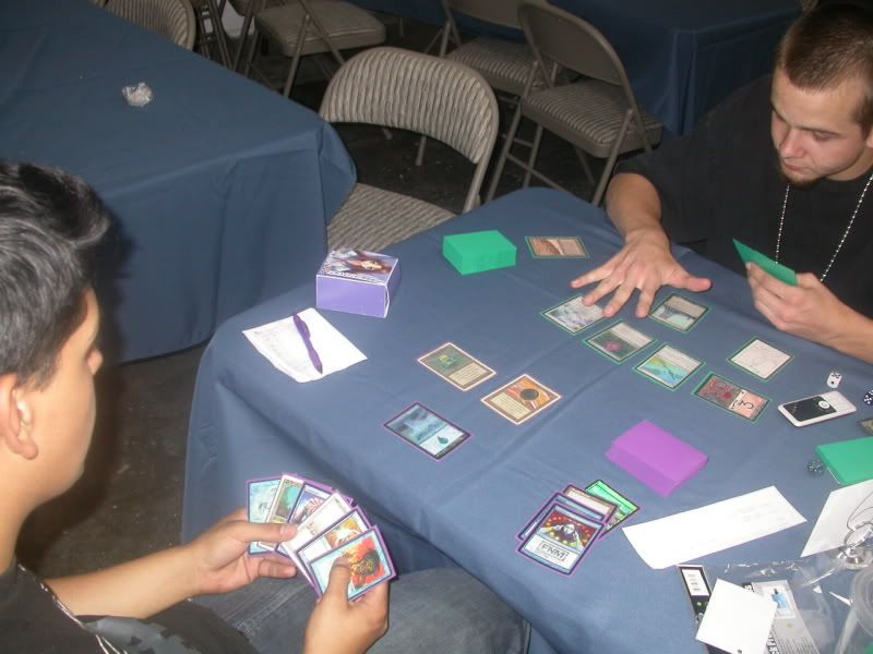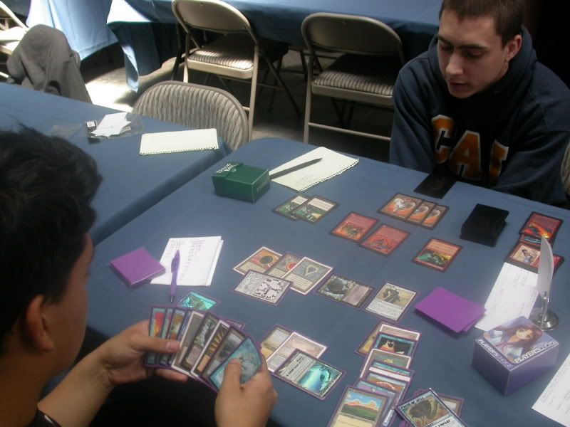Team Vacaville's Junior vs Team Vacaville's Alex. Junior decided to play a deck (FOB's deck) with 16 proxies. He made it happen by borrowing 2 Psychatogs and subbing 4 Drains for 4 Negates. Then faced Artifact Aggro deck.