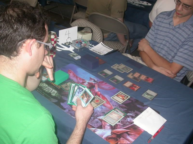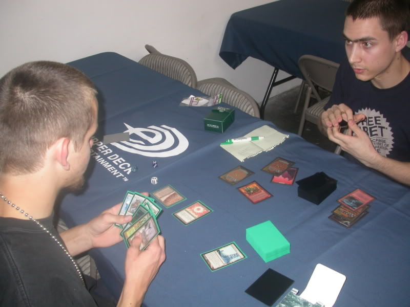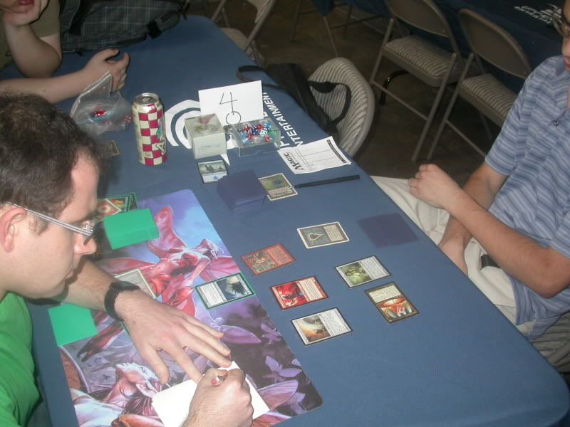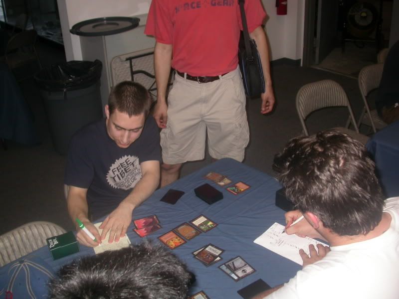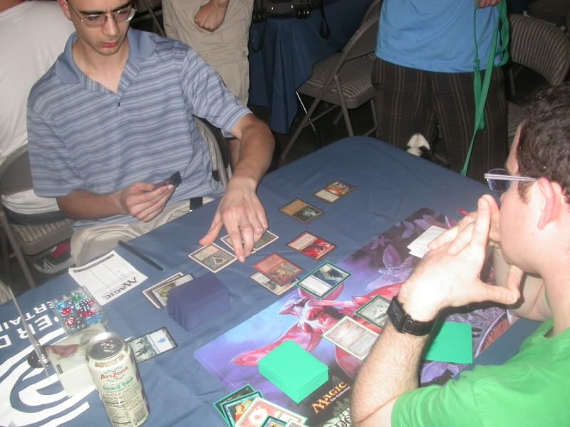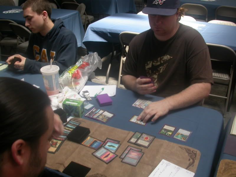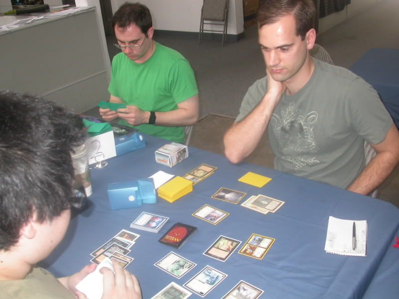 Team Vacaville's Junior vs Team Vacaville's Alex. Junior decided to play a deck (FOB's deck) with 16 proxies. He made it happen by borrowing 2 Psychatogs and subbing 4 Drains for 4 Negates. Then faced Artifact Aggro deck.