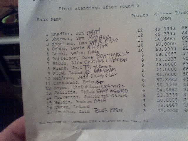 Near as I could tell, Sam's burn deck proved quite problematic for many game plans. (In this case, Bob Combo)