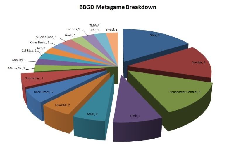 Blue Bell Game Day #18 is in the books. With 37 players this time, we saw a slight uptick in attendance from the last few. Here's to hoping that everyone makes it out to the next BBGD (#19!), December 3rd, for an Ancestral Recall! Thank you to everyone who continues to play Vintage and make these events a lot of fun. Without further ado, here is what happened at Blue Bell on the 22nd! The Top 8:Josh Potucek (Landstill) defeated Jake Gans (Minus Six) Tim Taylor (Stax) defeated Josh Butker (Stax) JP Kohler (MUD) defeated Ryan Fisher (Snapcaster Control) Jeff Folinus (Stax) defeated Jonathan Addesa (Dredge) The Top 4:Tim Taylor (Stax) defeated JP Kohler (MUD) Josh Potucek (Landstill) defeated Jeff Folinus (Stax) The Finals:Josh Potucek (Landstill) defeated Tim Taylor (Stax) Josh Potucek wins his 3rd Blue Bell tournament IN A ROW with Landstill, and took the lead in the Player of the Year Race! The Top 8 Decklists:1st Place for the 3rd time IN A ROW: Josh Potucek playing Landstill (read his report HERE) Maindeck: 4 Force of Will 4 Mana Drain 1 Red Elemental Blast 2 Mindbreak Trap 2 Misdirection 2 Mental Misstep 3 Fire/Ice 2 Crucible of Worlds 4 Null Rod 4 Standstill 3 Jace, the Mind Sculptor 1 Time Walk 1 Ancestral Recall 1 Steel Sabotage 1 Echoing Truth 1 Hurkyl’s Recall 4 Volcanic Island 3 Island 1 Polluted Delta 1 Misty Rainforest 1 Scalding Tarn 1 Flooded Strand 1 Library of Alexandria 1 Strip Mine 4 Wasteland 4 Mishra’s Factory 1 Black Lotus 1 Mox Ruby 1 Mox Sapphire Sideboard: 2 Underground Sea 4 Leyline of the Void 2 Yixlid Jailer 3 Energy Flux 1 Steel Sabotage 2 Ingot Chewer 1 Red Elemental Blast 2nd Place: Tim Taylor playing “The good version of Stax” (Stax)Maindeck: 4 Mishra’s Workshop 4 Wasteland 3 Ancient Tomb 4 Mountain 1 Bazaar of Baghdad 1 Tolarian Academy 1 Strip Mine 1 Barbarian Ring 1 Sol Ring 1 Mana Vault 1 Mana Crypt 1 Black Lotus 5 Moxen 2 Expedition Map 3 Crucible of Worlds 4 Thorn of Amethyst 2 Sphere of Resistance 1 Trinisphere 3 Smokestack 4 Tangle Wire 4 Lodestone Golem 4 Goblin Welder 2 Karn, Silver Golem 3 Phyrexian Metamorph Sideboard: 1 Phyrexian Metamorph 3 Mental Misstep 3 Razormane Masticore 1 Bojuka Bog 4 Nihil Spellbomb 2 Dismember 1 Tormod’s Crypt Top 4: JP Kohler playing “Master of my domain” (MUD)Maindeck: 4 Mishra’s Workshop 4 Wasteland 4 Ancient Tomb 3 City of Traitors 1 Tolarian Academy 1 Strip Mine 5 Moxen 1 Sol Ring 1 Mana Vault 1 Mana Crypt 1 Black Lotus 4 Chalice of the Void 4 Sphere of Resistance 3 Thorn of Amethyst 4 Tangle Wire 1 Trinisphere 4 Metalworker 4 Lodestone Golem 2 Phyrexian Metamorph 3 Kuldotha Forgemaster 1 Duplicant 1 Steel Hellkite 1 Sundering Titan 1 Myr Battlesphere 1 Blightsteel Colossus Sideboard: 2 Duplicant 2 Phyrexian Metamorph 3 Relic of Progenitus 2 Nihil Spellbomb 3 Tormod’s Crypt 2 Crucible of Worlds 1 Wurmcoil Engine Top 4: Jeff Folinus playing StaxMaindeck: 4 Mishra’s Workshop 4 Wasteland 3 Ancient Tomb 4 Mountain 1 Bazaar of Baghdad 1 Tolarian Academy 1 Strip Mine 1 Barbarian Ring 1 Sol Ring 1 Mana Vault 1 Mana Crypt 1 Black Lotus 5 Moxen 2 Expedition Map 3 Crucible of Worlds 4 Thorn of Amethyst 2 Sphere of Resistance 1 Trinisphere 3 Smokestack 4 Tangle Wire 4 Lodestone Golem 4 Goblin Welder 2 Karn, Silver Golem 3 Phyrexian Metamorph Sideboard: 1 Phyrexian Metamorph 3 Mental Misstep 1 Bojuka Bog 4 Nihil Spellbomb 3 Dismember 2 Tormod’s Crypt 1 the Tabernacle at Pendrell Vale Top 8: Josh Butker playing StaxMaindeck: 4 Mishra’s Workshop 4 Ancient Tomb 4 Wasteland 1 Strip Mine 2 Rishadan Port 1 Mana Crypt 1 Mana Vault 5 Moxen 1 Sol Ring 1 Buried Ruin 1 Tolarian Academy 4 Serum Powder 4 Smokestack 4 Lodestone Golem 4 Chalice of the Void 4 Sphere of Resistance 4 Tangle Wire 3 Curicble of Worlds 1 Trinisphere 2 Karn, Silver Golem 3 Phyrexian Metamorph 2 Expedition Map Sideboard: 4 Surgical Extraction 4 Nihil Spellbomb 4 Porcelain Legionnaire 1 Pithing Needle 2 Precursor Golem Top 8: Jonathan Addessa playing “I ran out of clever names” (Dredge)Maindeck: 4 Golgari Grave-Troll 4 Stinkweed Imp 4 Bridge from Below 4 Cabal Therapy 3 Dread Return 2 Golgari Thug 1 Flame-Kin Zealot 2 Sun Titan 3 Fatestitcher 1 Lotus petal 1 Lion’s Eye Diamond 1 Black Lotus 3 City of Brass 4 Undiscovered Paradise 4 Bazaar of Baghdad 1 Ancestral Recall 4 Bloodghast 3 Ichorid 1 Dakmar Salvage 4 Narcomoeba 4 Serum Powder 2 Ancient Grudge Sideboard: 4 Nature’s Claim 3 Chain of Vapor 4 Leyline of the Void 2 Firestorm 1 Elesh-Norn, Grand Cenobite 1 Darkblast Top 8: Jake Gans playing Minus SixMaindeck: 4 Underground Sea 4 Bazaar of Baghdad 4 Polluted Delta 3 Misty Rainforest 2 Island 1 Swamp 2 Animate Dead 2 Dance of the Dead 1 Necromancy 3 Worldgorger Dragon 1 Oona, Queen of the Fae 1 Black Lotus 5 Moxen 1 Brainstorm 4 Duress 1 Thirst for Knowledge 1 Mystical Tutor 4 Force of Will 4 Dark Confidant 1 Echoing Truth 1 Mana Crypt 1 Sol Ring 2 Read the Runes 1 Sensei’s Divining Top 1 Vampiric Tutor 1 Demonic Tutor 1 Time Walk 1 Ancestral Recall 2 Intuition Sideboard: 4 Mana Drain 2 Jace, the Mind Sculptor 1 Blightsteel Colossus 1 Tinker 1 Time Vault 1 Voltaic Key 1 Tolarian Academy 1 Snow-Covered Island 1 Tezzeret the Seeker 1 Gifts Ungiven 1 Yawgmoth’s Will Top 8: Ryan Fisher playing “WONDERstruck” (Snapcaster Control)Maindeck: 2 City of Brass 2 Underground Sea 4 Island 4 Misty Rainforest 1 Volcanic Island 2 Tropical Island 1 Tolarian Academy 5 Moxen 1 Black Lotus 1 Sol Ring 1 Mana Vault 1 Brainstorm 1 Ancestral Recall 2 Mental Misstep 1 Flusterstorm 3 Mana Drain 1 Time Walk 1 Fire/Ice 1 Hurkyl’s Recall 1 Merchant Scroll 1 Tinker 1 Jace, the Mind Sculptor 1 Gifts Ungiven 1 Fact or Fiction 4 Force of Will 1 Vampiric Tutor 4 Dark Confidant 1 Demonic Tutor 1 Yawgmoth’s Will 2 Snapcaster mage 1 Voltaic Key 1 Time Vault 1 Blightsteel Colossus 1 Red Elemental Blast 2 Sensei’s Divining Top Sideboard: 1 Red Elemental Blast 1 Pyroblast 1 Fire/Ice 4 Leyline of the Void 2 Yixlid Jailer 2 Ancient Grudge 2 Nature’s Claim 1