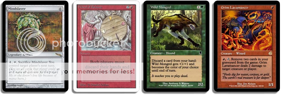 I'm sure you guys are running that new Dredge/Black aggro-ish list". I recently read about the deck, very smart like most of the transformational decks. In other words, it is a Dredge deck game 1 and then it becomes an Black aggro-ish deck game 2 (bob, ichorid, bloodghast...). Basically, 90% Game 1 win and then 90% Game 2 win because your opponent is sideboarding in 6 or 7 useless cards and then mulligans to oblivion in order to find 1 or 2 of these useless cards in his opening hand.